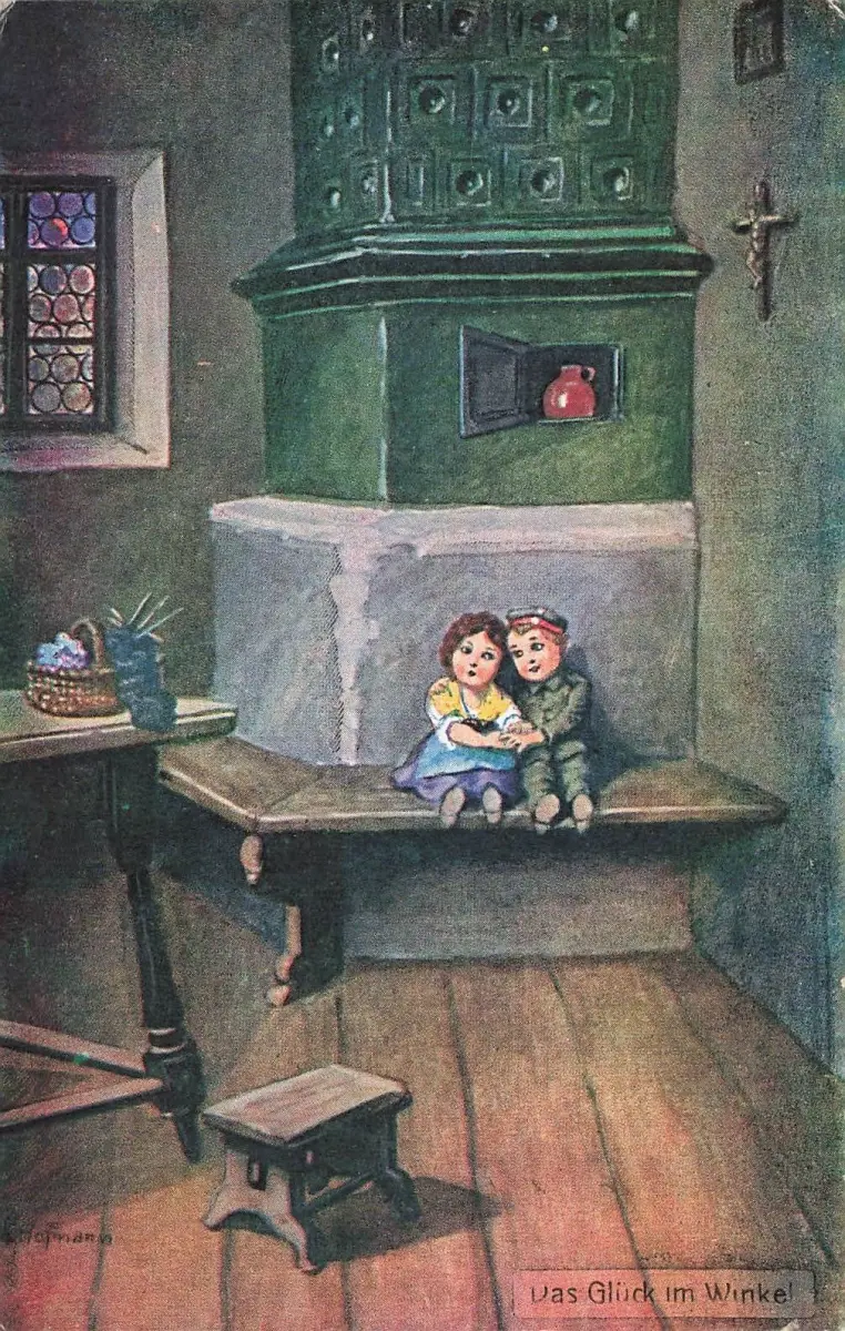 Das Glück im Winkel Kleiner Soldat mit Mädchen Postkarte AK 1918
