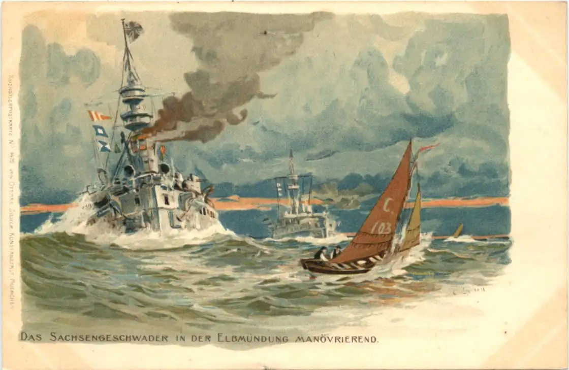 Das Sachsengeschwader in der Elbmündung - Litho -785546