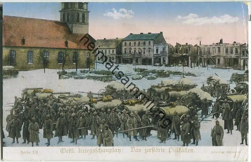 Das zerstörte Pillkallen - Oestlicher Kriegsschauplatz - Soldaten - Bahnpost - Verlag Kriegshilfe München