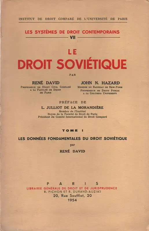 David, René / Hazard, John Newbold / Julliot de la Morandière, Léon Francis: Le droit soviétique; 1: Les données fondamentales du droit soviétique. (Les systèmes de droit contemporains 7).