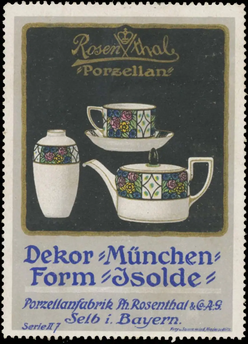 Serie II, 7, Druckerei: Krey und Sommerlad, Niedersedlitz, Rosenthal Porzellan, Größe/Zustand: 8x6 , guter Zustand, Original alte Reklamemarke die seinerzeit für die Werbung benutzt wurde
