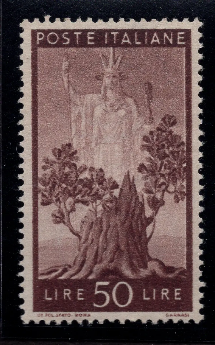 MNH - Vollgummi - Democratica Lire 50 Nr. 567 filigranes weißes Papier in Position DA (Sass. spec. n. 22/I DA), neuer perfekter Vollgummi - Kat. euro 160 Cod. 3382/WEB