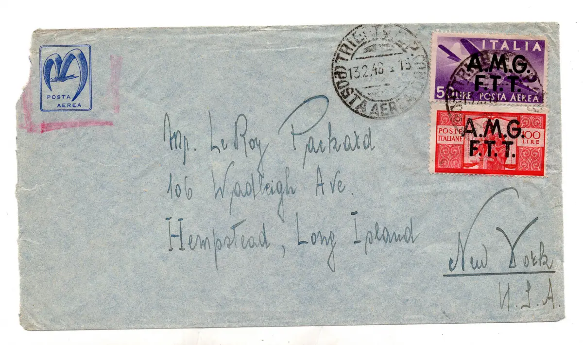 Democratica Lire 100 Nr. 17 + Ergänzung P.A. Nr. 6 auf Luftumschlag von Triest nach New York am 12.4.48 - Ungewöhnlich im Tarif - Kat. 800 n. 993/20