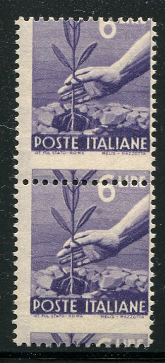 Democratica Lire 6 Paar Sorten verschobene Verzahnung Vollgummi - Democratica Lire 6 Nr. 556u Vertikaldrehmoment mit stark verschobener horizontaler Verzahnung - Ungewöhnlich - Kat. 180 Cod. 482/13