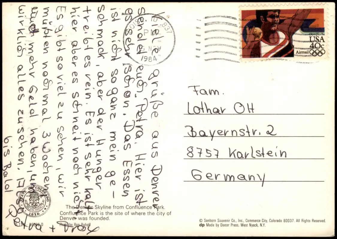 Denver Ortsansicht Skyline from Confluence Park (City View) 1984