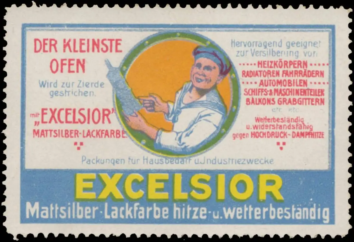Excelsior Mattsilber-Lackfarbe, Farbe, Größe/Zustand: 4x6 , guter Zustand, Original alte Reklamemarke die seinerzeit für die Werbung benutzt wurde
