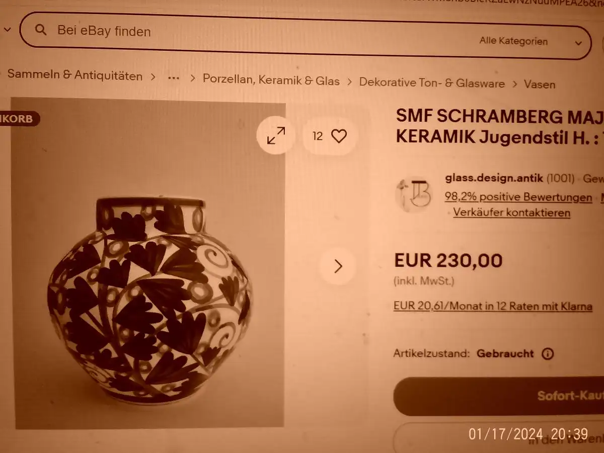 Die Schramberger Majolikafabrik war in der Bauhauszeit tatsächlich sehr aktiv und hat einige bekannte Künstler beschäftigt. Zu den bekanntesten Malern, die dort gearbeitet haben, gehören Franz Zeisel, Karl Schneider und Eva Zeisel. Eva Zeisel war besonders bekannt für ihre innovativen Entwürfe und hat stark den Stil der Bauhauszeit geprägt. Es könnte hilfreich sein, die Signatur mit bekannten Unterschriften dieser Künstler zu vergleichen. Schramberg hat eine reiche Tradition in der Keramikherstellung, besonders während der Bauhauszeit, und Stücke aus dieser Zeit sind heute besonders wertvoll.