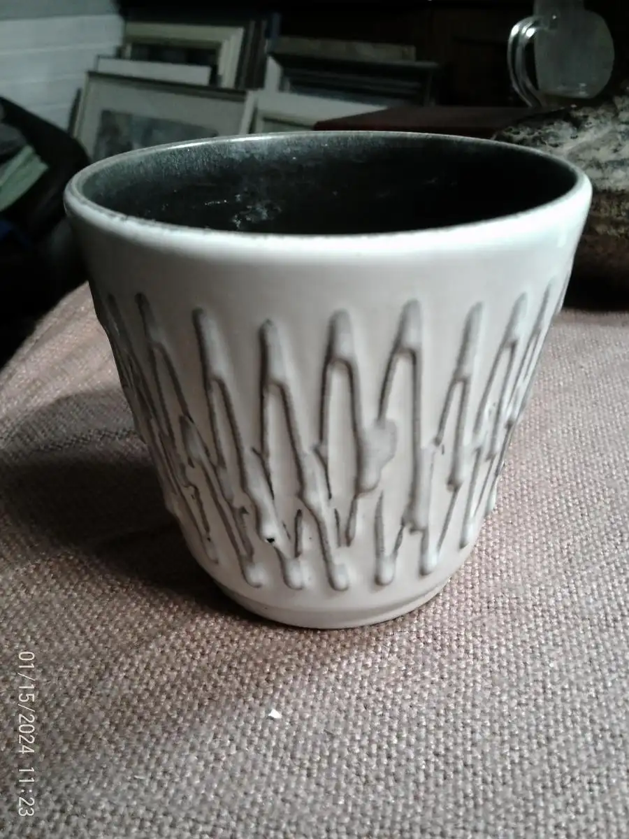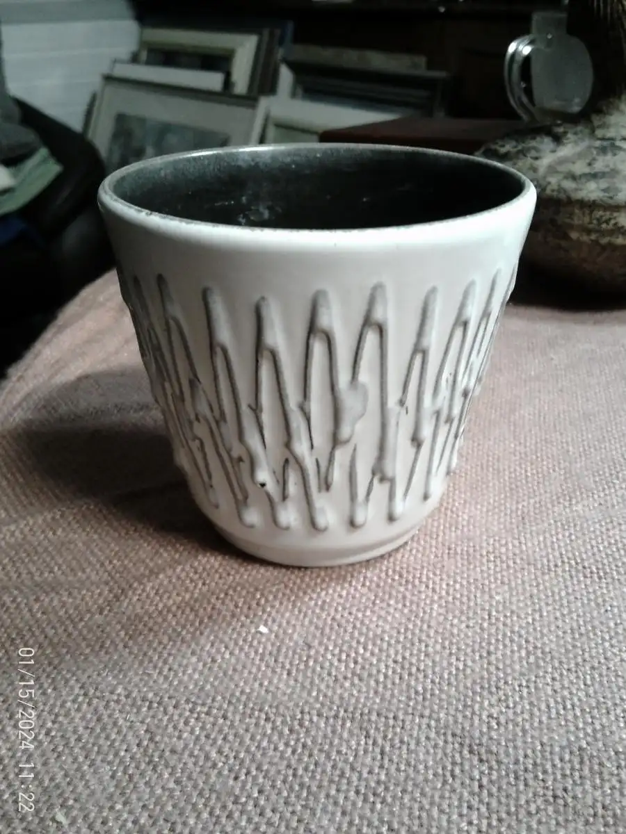 Halidan Kutla Designer Keramik kleiner Übertopf Zickzack Muster um 1970
