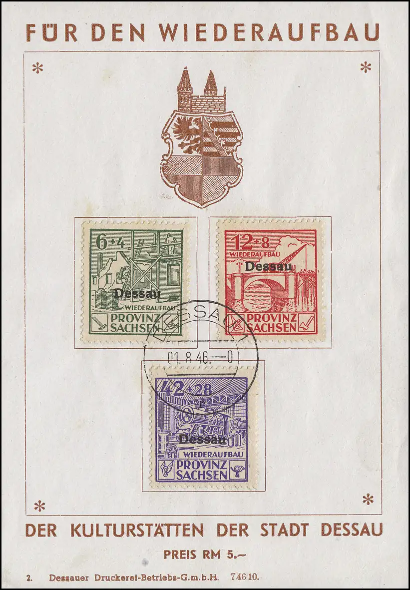 Dessau I-III Wiederaufbau, 3 Werte komplett, Satz auf 2. Spendenkarte 1.8.1946