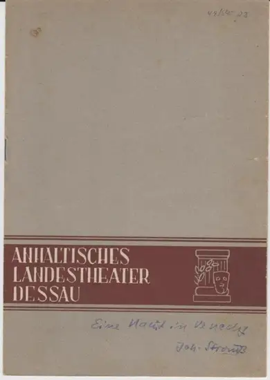 Dessau. - Landestheater. - Anhaltisches Theater. - Intendant: Willy Bodenstein. - Red. : Heinz Thiel. - Johann Strauß: Anhaltisches Landestheater Dessau. Heft 28 der Spielzeit 1949 / 1950. - Mit Besetzungsliste zu: Eine Nacht in Venedig ( Operette von F.