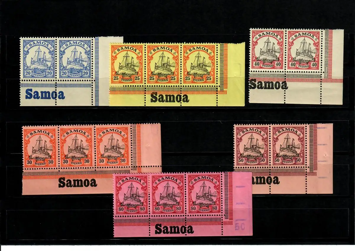 Deutsche Kolonien: Samoa 6x mit Inschrift Eckrand