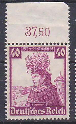Deutsche Nothilfe Trachten Franken 40 Pfg. ** Falzrest auf Oberrand (597)