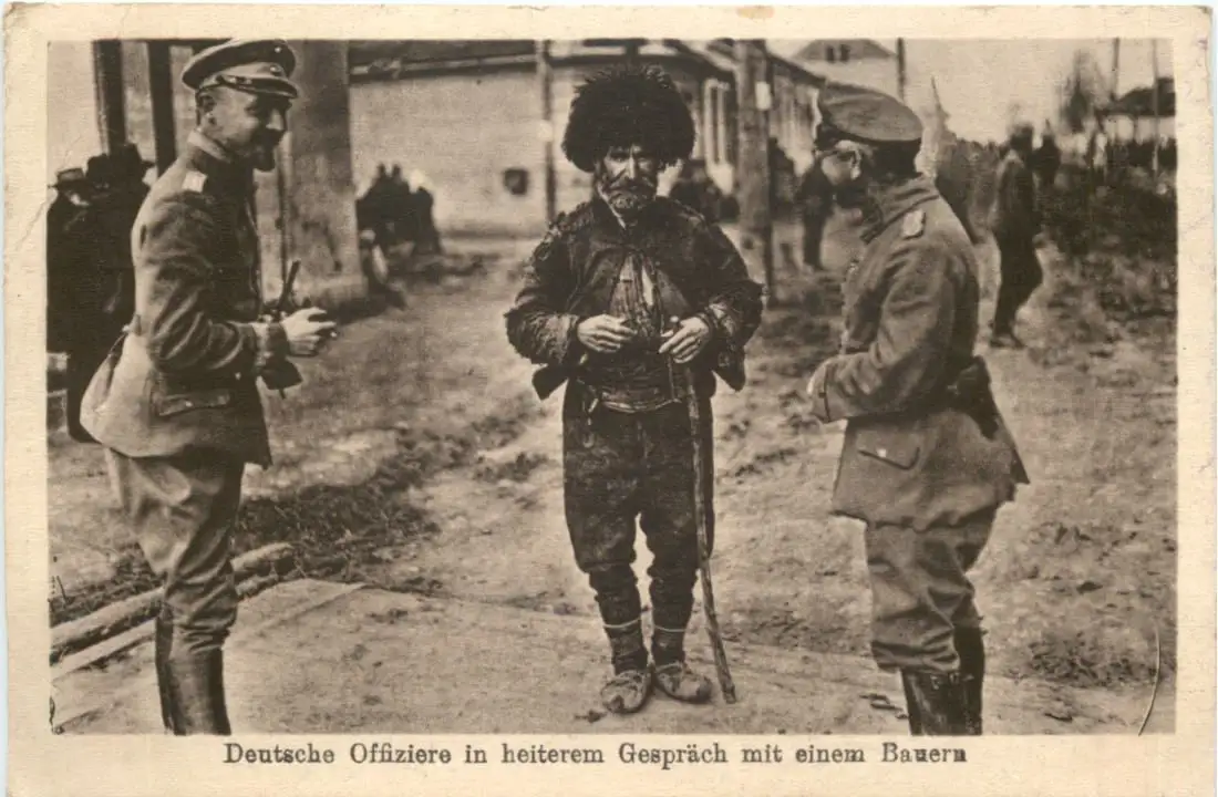Deutsche Offiziere im Gespräch mit einem Bauern - Feldpost -716852