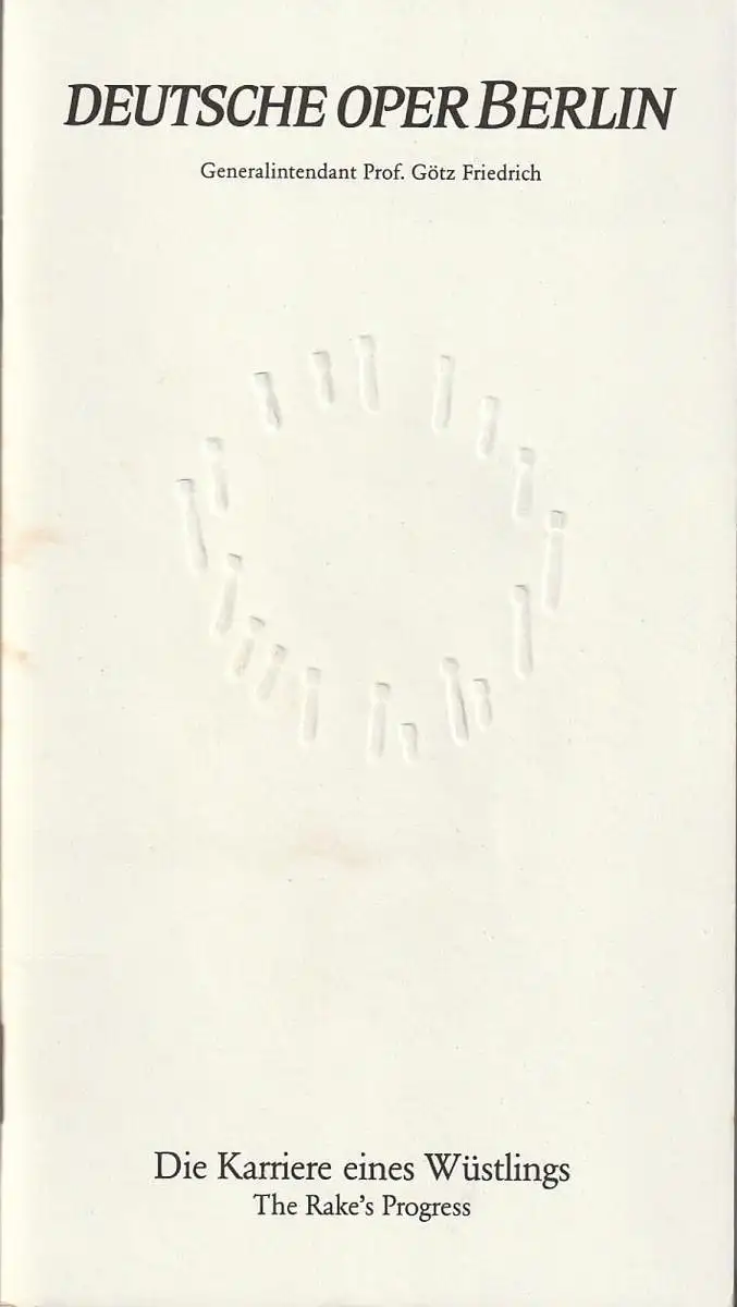 Deutsche Oper Berlin, Götz Friedrich, Günther Uecker ( Entwurf Prägung der Titelseite ), Curt A. Roesler, Karin Heckermann, u.a: Programmheft Igor Strawinsky DIE KARRIERE EINES WÜSTLINGS THE RAKE´S PROGRESS.
