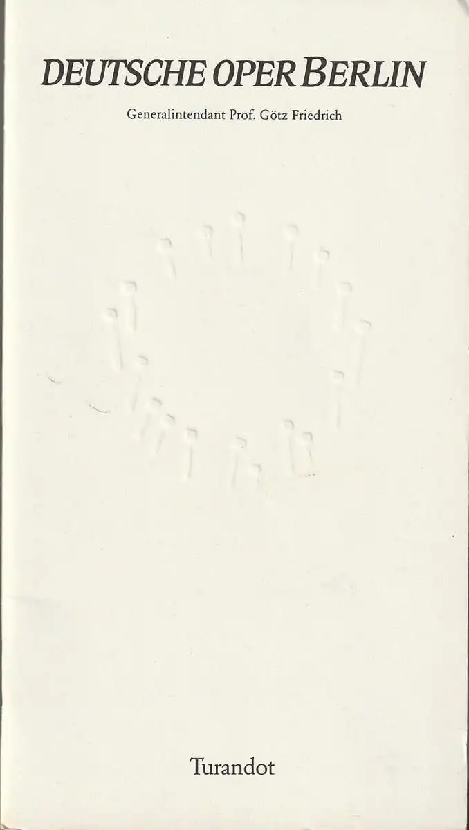 Deutsche Oper Berlin, Götz Friedrich, Günther Uecker ( Entwurf Prägung der Titelseite ), Karin Heckermann, Curt A. Roesler: Programmheft Giacomo Puccini TURANDOT.
