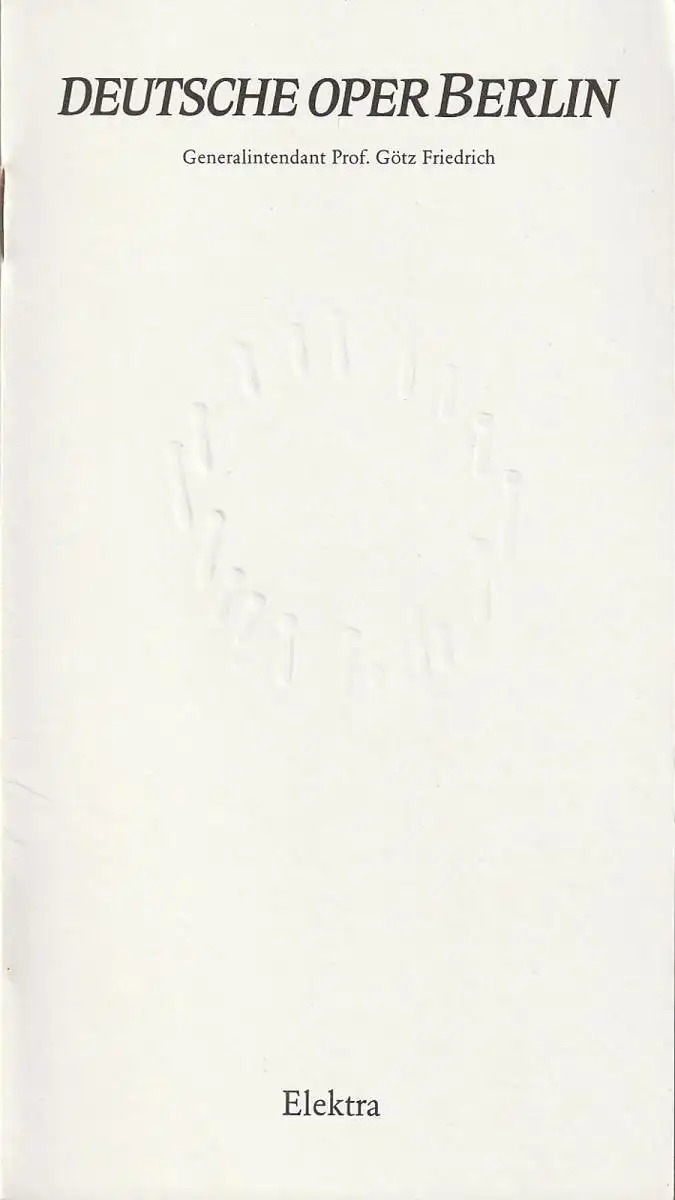 Deutsche Oper Berlin, Götz Friedrich, Günther Uecker ( Entwurf Prägung der Titelseite ), Peter Kain: Programmheft Richard Strauss ELEKTRA 1981 / 89.