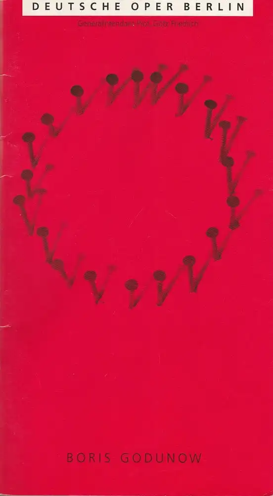 Originalfassung in russischer Sprache mit deutschen Übertiteln. Oper nach A. S. Puschkin und N. M. Karamsin. Musikalische Leitung: Rafael Frühbeck de Burgos. Inszenierung: Götz Friedrich. Ausstattung: Gottfried Pilz und Isabel Ines Glathar. Chöre: Helmut Sonne, Hellwart Matthiesen. Mitwirkende: Matti Salminen, Elene Zhidkova, Gudrun Sieber, Kaja Borris, Rene Kollo, Manfred Röhrl, u. a. - Theaterprogramm, Opernprogramm, Ballettprogramm, Musicalprogramm, Konzertprogramm, Theatermemorabilia, Programmhefte Sammlung, deutsche Theatergeschichte.