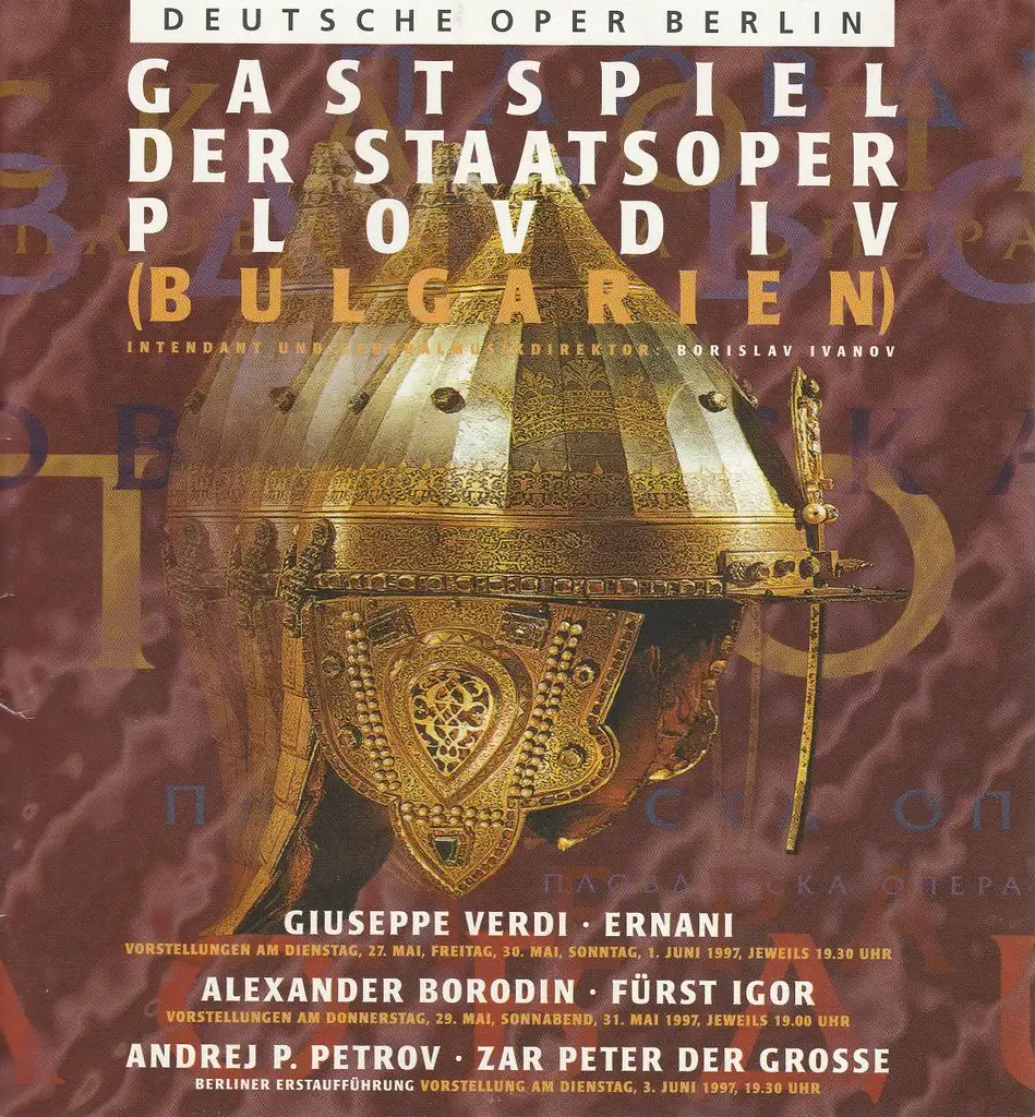 Giuseppe Verdi ERNANI / Alexander Borodin FÜRST IGOR / Andrej P. Petrov ZAR PETER DER GROSSE. Musikalische Leitung: Borislav Ivanov - Theaterprogramm, Opernprogramm, Ballettprogramm, Musicalprogramm, Konzertprogramm, Theatermemorabilia, Programmhefte Sammlung, deutsche Theatergeschichte.