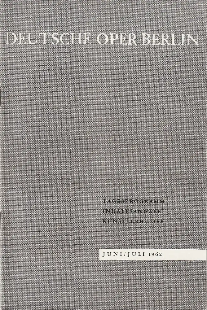 Deutsche Oper Berlin: Programmheft Giuseppe Verdi EIN MASKENBALL 5. Juli 1962 Heft Juni / Juli 1962.