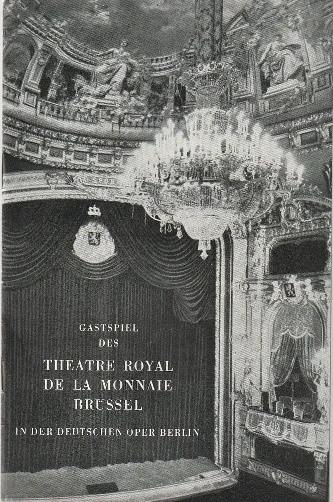 original Heft, nicht paginiert, 28 Seiten, Kurzbiographien der Künstlern der Belgischen Staatsoper, beiliegendes Blatt mit Fotos dazu, Szenenfotos zur Aufführung sowie zu Ballett:Stücke für Orchester, Divertimento, Le sacre du Printemps, zu Serenade und Hoffmanns Erzählungen. Zustand: sehr gut Klammern leicht angerostet