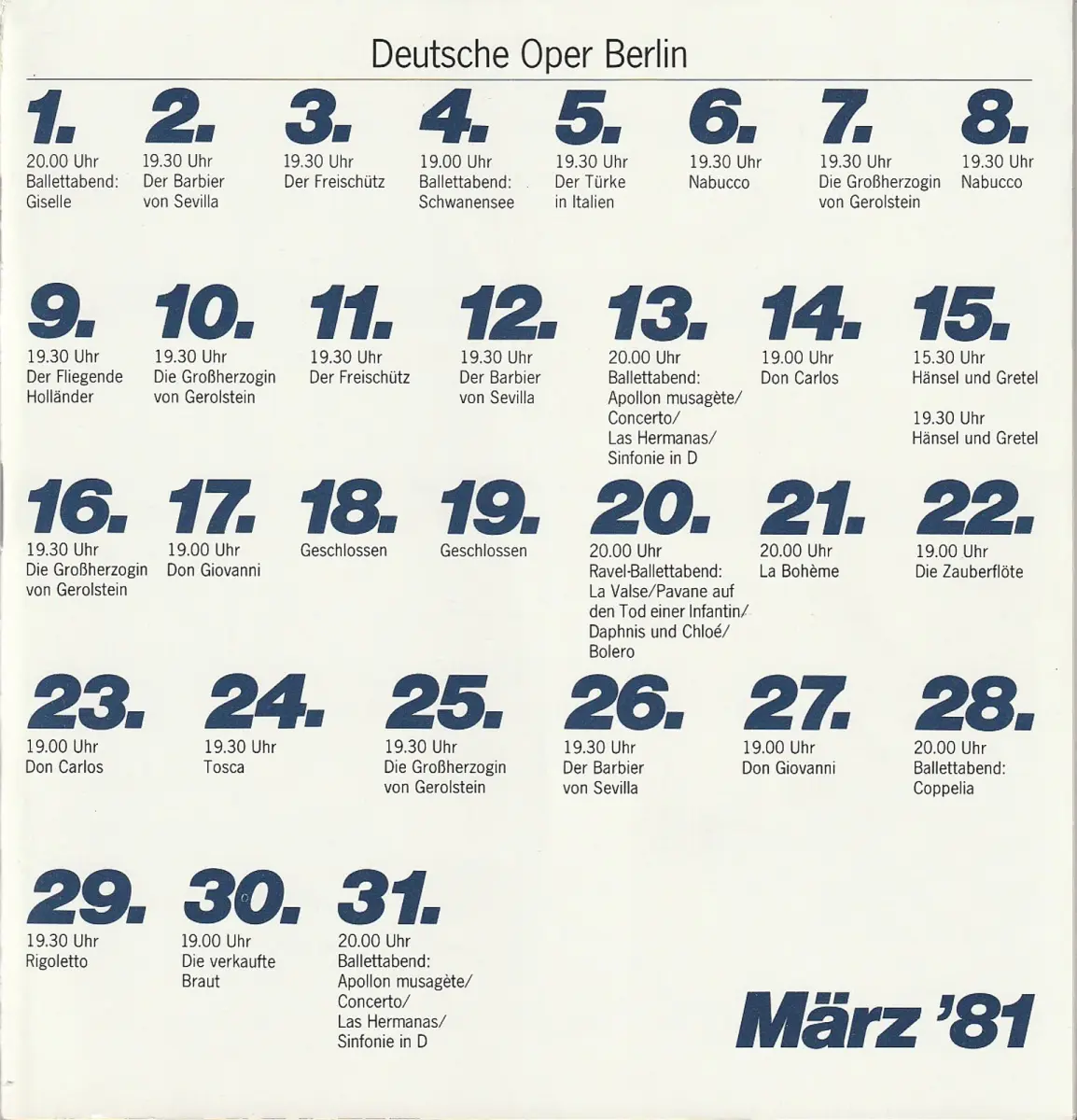 Deutsche Oper Berlin, Siegfried Palm, Karl Dietrich Gräwe, Peter Kain, Curt Roesler: Programmheft Jacques Offenbach DIE GROßHERZOGIN VON GEROLSTEIN 10. März 1981.