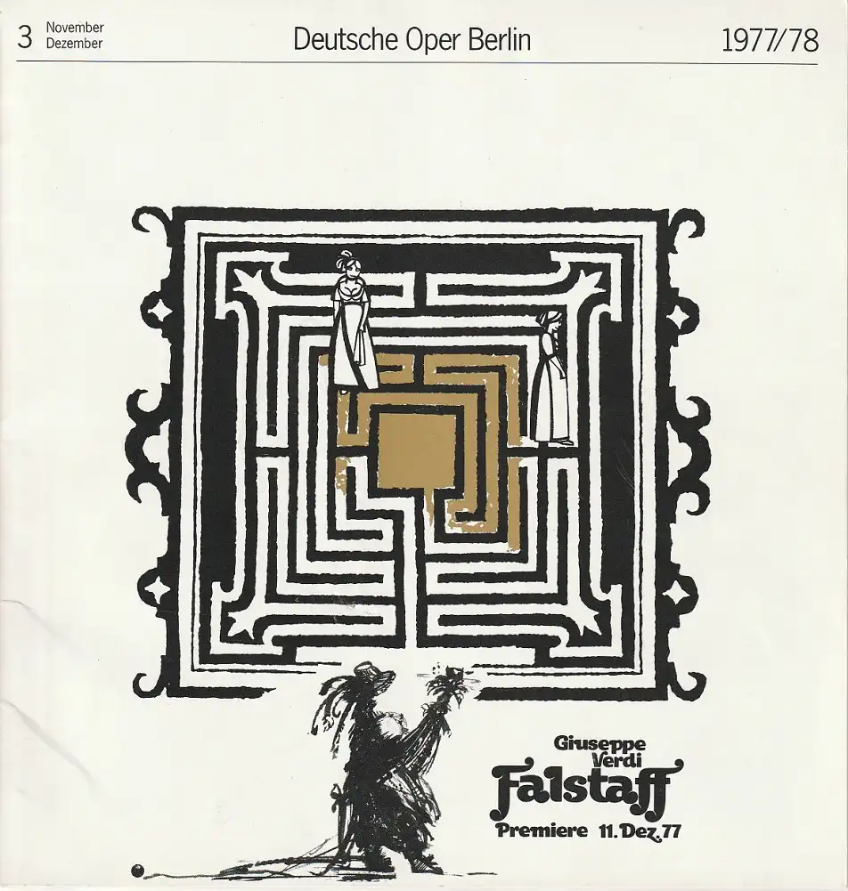 Deutsche Oper Berlin, Siegfried Palm, Karl Dietrich Gräwe, Urs Leicht, Dora Hauns, Gerhard Milting: Programmheft Giuseppe Verdi FALSTAFF Premiere 11. Dezember 1977 Spielzeit 1977 / 78 Heft 3 November / Dezember.