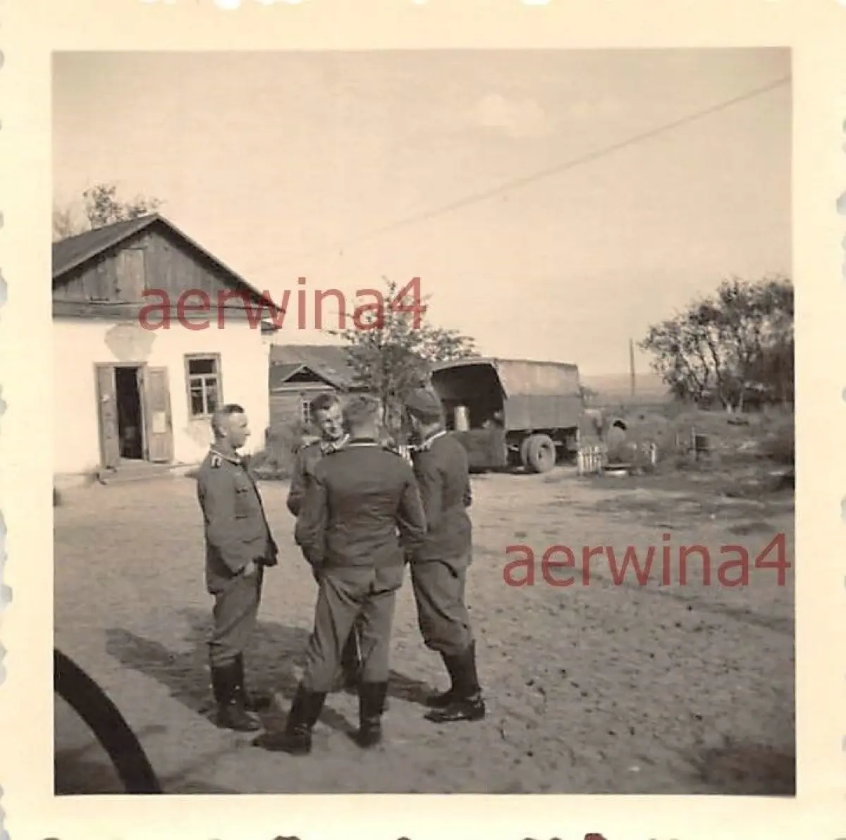 Deutsche Soldaten am LKW vor Quartier in Insankow Ostfront