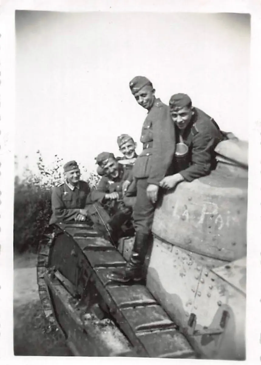 Deutsche Soldaten auf franz. Panzer FT - 17 De Panne Belgien