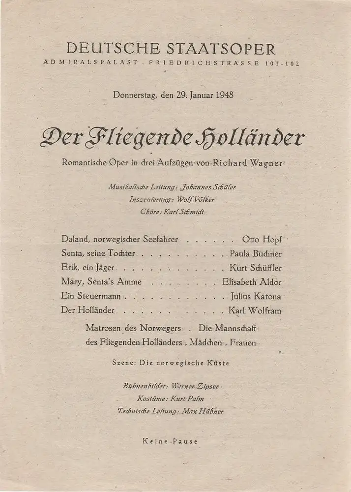 Deutsche Staatsoper Admiralspalast: Programmheft Richard Wagner DER FLIEGENDE HOLLÄNDER 29. Januar 1948.