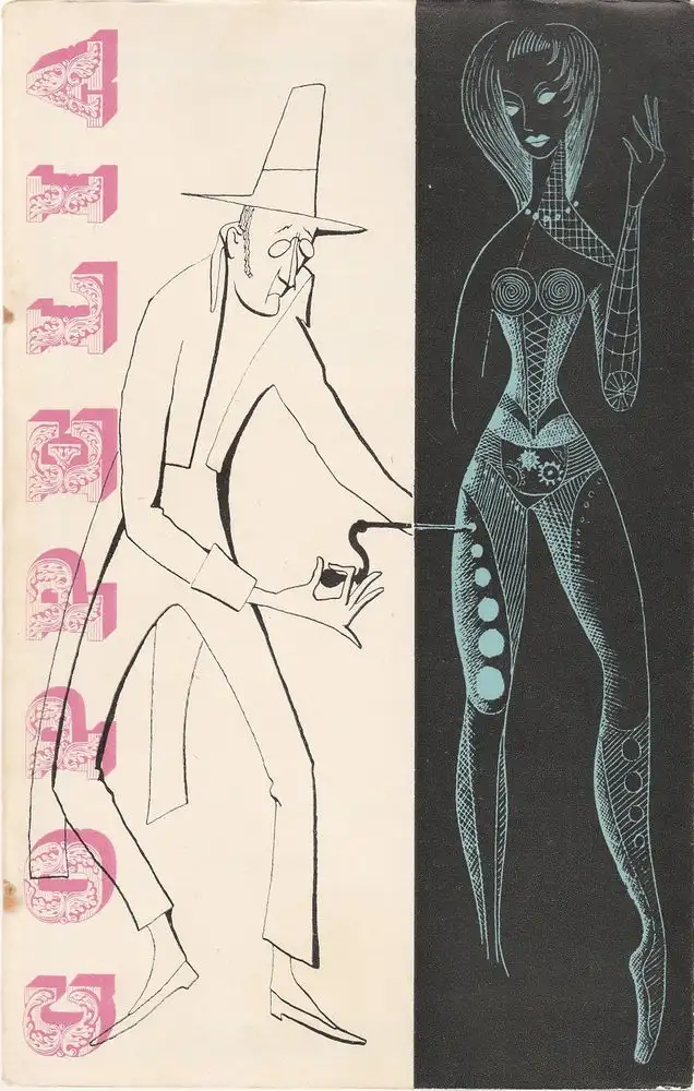 original Heft mit Originalschutzumschlag, Format ca. 14,5 x 23 cm, nicht paginiert, ca. 24 Seiten, mehrere Abbildungen, davon viele Illustrationen von Frans Haacken, beiliegendes Faltblatt mit 18 Probenfotos und einem Bühnenbild von Hainer Hill, beiliegende Besetzungsliste. Zustand: gut, Umschlag mit kleinen Läsuren, Klammern rostig, teilweise auf das Papier durchgefärbt