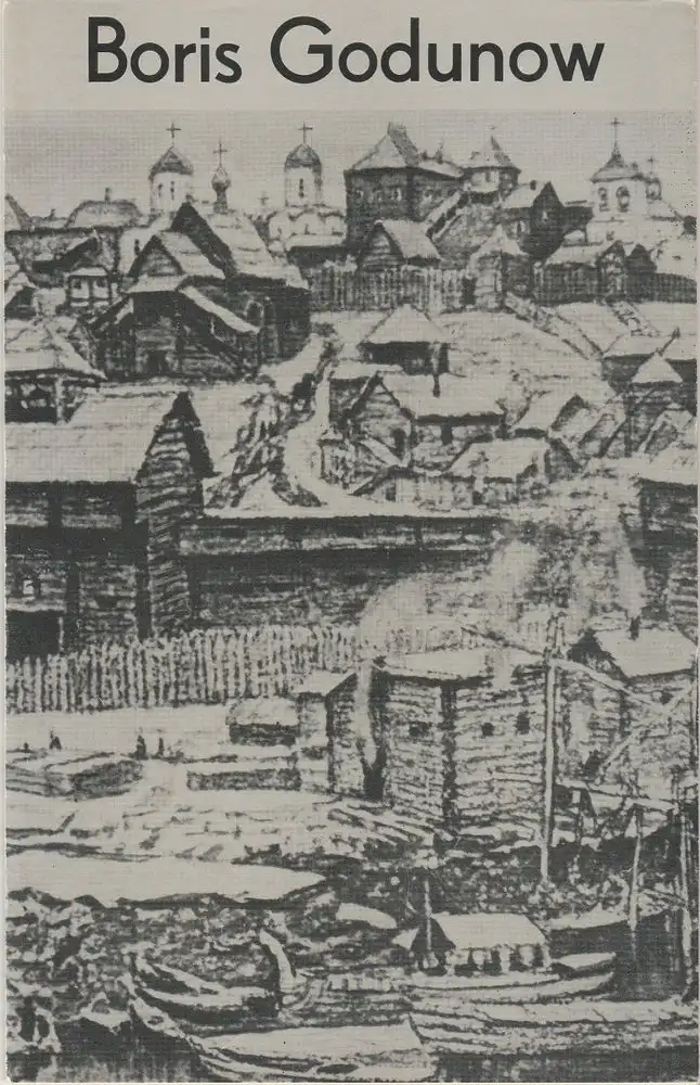 Musikalisches Volksdrama nach Alexander Puschkin und Nikolai Karamsin. Musik: Modest Petrowitsch Mussorgski. Instrumentation: Dmitri Schostakowitsch. Musikalische Leitung: Heinz Fricke. Inszenierung: Erhard Fischer. Bühne: Falk von Wangelin. Kostüme: Christine Stromberg. Mitwirkende: Kurt Moll, Edda Schaller, Renate Hoff, Annelies Burmeister, Horst Hiestermann, Horst Lunow, Fritz Hübner, Martin Ritzmann, u.a. - Theaterprogramm, Opernprogramm, Ballettprogramm, Musicalprogramm, Konzertprogramm, Theatermemorabilia, Programmhefte Sammlung, deutsche Theatergeschichte.