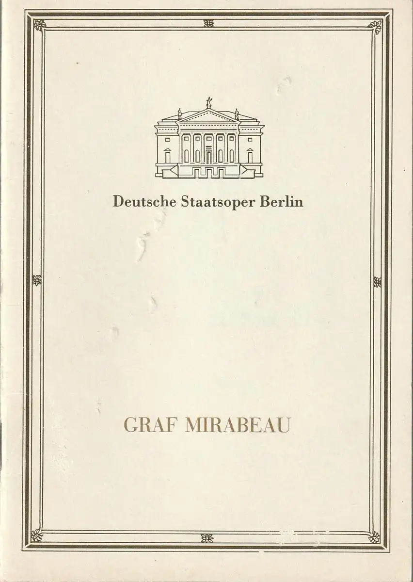 Deutsche Staatsoper Berlin DDR, Ilse Winter: Programmheft Siegfried Matthus GRAF MIRABEAU 29. April 1990.