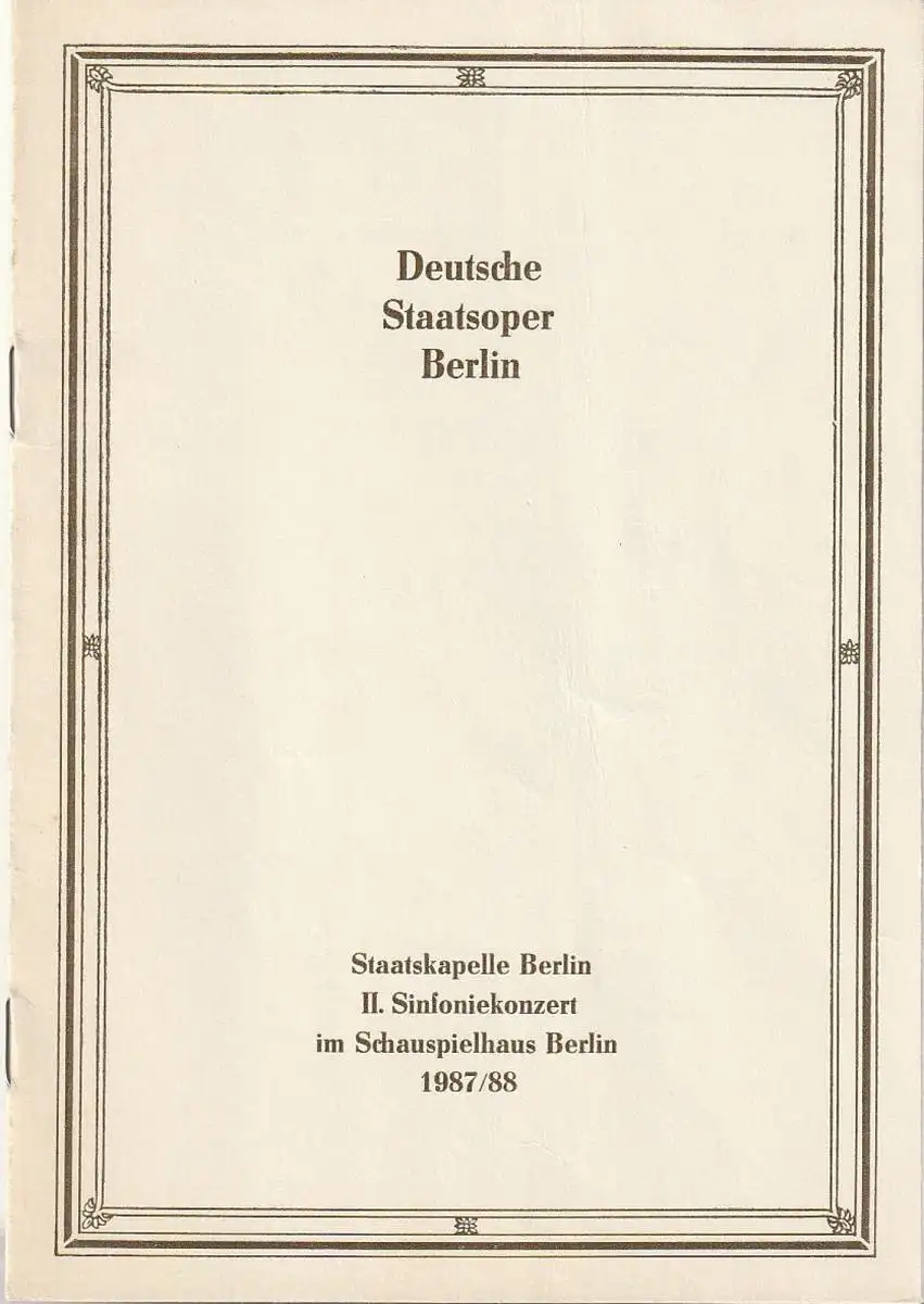 Titel: Programmheft STAATSKAPELLE BERLIN II. SINFONIEKONZERT 19. + 20. November 1987 Schauspielhaus Berlin Großer Konzertsaal Spielzeit 1987 / 88