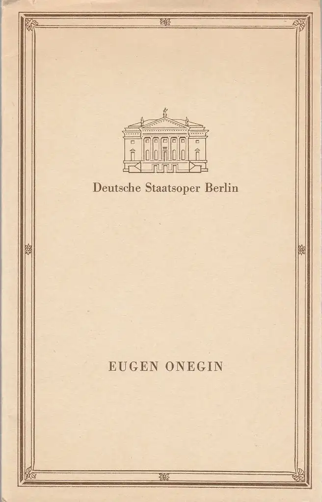 Lyrische Szenen in drei Akten nach Alexander Puschkin. Musikalische Leitung: Heinz Fricke. Inszenierung: Theo Adam. Bühne: Wilfried Werz. Kostüme: Erika Simmank-Heinze. Chöre: Lothar Hanff. Mitwirkende: Gisela Schröter, Magdalena Hojossyova, Edda Schaller, Annelies Burmeister, Claudio Nikolai, Peter Schreier, u. a. - Theaterprogramm, Opernprogramm, Ballettprogramm, Musicalprogramm, Konzertprogramm, Theatermemorabilia, Programmhefte Sammlung, deutsche Theatergeschichte.
