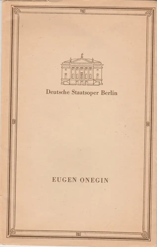 Wiederaufnahme. Lyrische Szenen in drei Akten von Alexander Puschkin von Pjotr I. Tschaikowski und Konstantin Schilowski. Musikalische Leitung: Christian Ehwald. Inszenierung: Theo Adam. Bühne: Wilfried Werz. Kostüme: Erika Simmank-Heinze. Choreographie: Lothar Hanff. Mitwirkende: Gisela Schröter, Magdalena Hajossyova, Elvira Dreßen, Barbara Bornemann, Jürgen Freier, u. a. - Theaterprogramm, Opernprogramm, Ballettprogramm, Musicalprogramm, Konzertprogramm, Theatermemorabilia, Programmhefte Sammlung, deutsche Theatergeschichte.