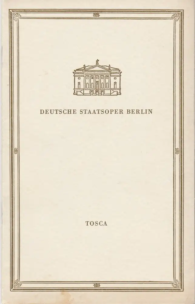 Deutsche Staatsoper Berlin, Deutsche Demokratische Republik, Günter Rimkus: Programmheft Giacomo Puccini TOSCA 22. September 1959.