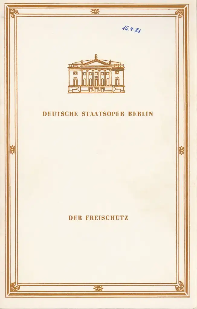 Titel: Programmheft Carl Maria von Weber DER FREISCHÜTZ 16. April 1981