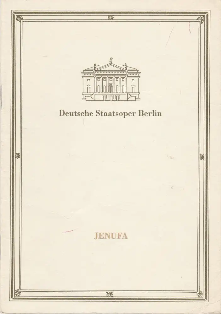 Deutsche Staatsoper Berlin, Deutsche Demokratische Republik, Ilse Winter, Wolfgang Jerzak, Rolf Kanzler, Christine Gruchot, Jutta Dudziak: Programmheft Leos Janacek JENUFA 21. Dezember 1991.