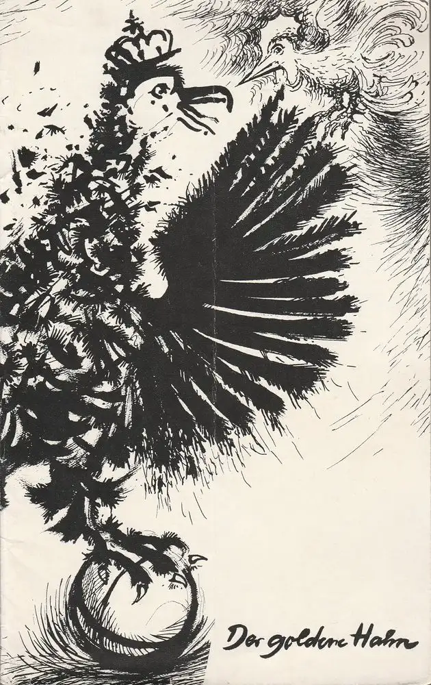 Oper in drei Akten. Texte von W. J. Bielski nach einem Märchen von A. Puschkin. Deutsche Übersetzung vom Heinrich Möller. Musikalische Leitung: Heinz Fricke. Inszenierung: Erhard Fischer. Gesamtausstattung: Wilfried Werz. Mitwirkende: Reiner Süß, Peter Bindszus, Horst Lunow, Siegfried Vogel, Gertraud Prenzlow, u. a. - Theaterprogramm, Opernprogramm, Ballettprogramm, Musicalprogramm, Konzertprogramm, Theatermemorabilia, Programmhefte Sammlung, deutsche Theatergeschichte.