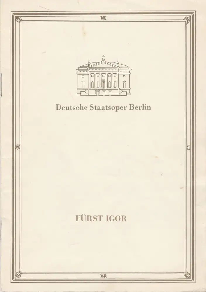 Oper in vier Akten, einem Prolog und einem Epilog. Libretto von Alexander Borodin auf der Grundlage des russischen Epos: Das Lied von der Heerfahrt Igors. Musikalische Leitung: Walter Weller. Inszenierung: Christian Pöppelreiter. Bühne: Wilfried Werz. Kostüme: Christine Stromberg. Choreographie: Roland Gawlik. Mitwirkende: Jürgen Freyer, Magdalena Hajossyova, Wolfgang Millgramm, Rene Pape, Fritz Hübner, u. a. - Theaterprogramm, Opernprogramm, Ballettprogramm, Musicalprogramm, Konzertprogramm, Theatermemorabilia, Programmhefte Sammlung, deutsche Theatergeschichte.