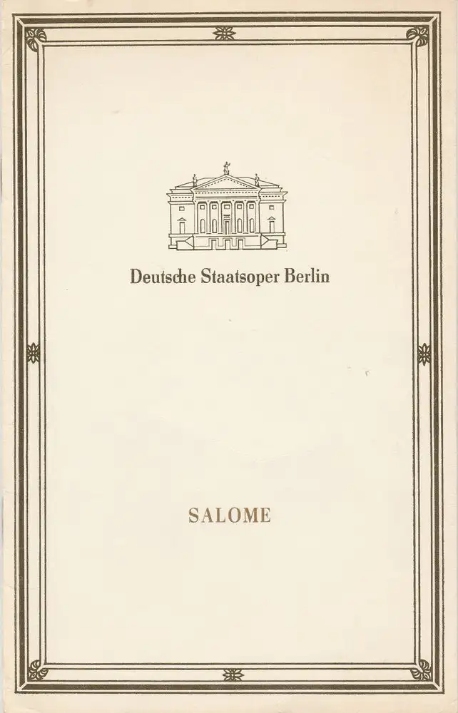 Drama in einem Auzug nach Oscar Wildes gleichnamiger Dichtung in deutscher Übersetzunh von Hedwig lachmann. Musikalische Leitung: Wolfgang Rennert. Inszenierung: Harry Kupfer. Gesamtausstattung Wilfried Werz. Mitwirkende: Günter Kurth, Gisela Schröter, Eva-Maria Bundschuh, Ekkehard Wlaschiha, Wolfgang Millgramm, u. a. - Theaterprogramm, Opernprogramm, Ballettprogramm, Musicalprogramm, Konzertprogramm, Theatermemorabilia, Programmhefte Sammlung, deutsche Theatergeschichte.