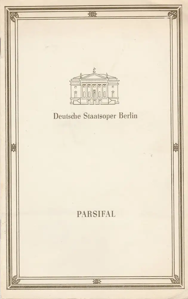 Ein Bühnenweihfestspiel. Musikalische Leitung: Wolfgang Rennert. Inszenierung: Harry Kupfer. Bühne: Peter Sykora. Kostüme: Christine Stromberg. Mitwirkende: Hans-Joachim Ketelsen, Heinz Reeh, Malcolm Smith, Reiner Goldberg, Rolf Haunstein, u. a. - Theaterprogramm, Opernprogramm, Ballettprogramm, Musicalprogramm, Konzertprogramm, Theatermemorabilia, Programmhefte Sammlung, deutsche Theatergeschichte.