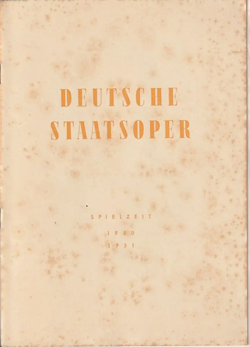 original Heft, nicht paginiert, ca. 12 Seiten, Bühnenbildskizzen und Figurinen von Hertha Böhm, beiliegendes Blatt mit einem Aufsatz junger Musikwissenschaftler vom Staatlichen Konservatorium Berlin zum Verstaändnis der Werke Lortzings und beiliegende Besetzungsliste. Zustand: Deckel und Rückseite mit Stockfleckche,