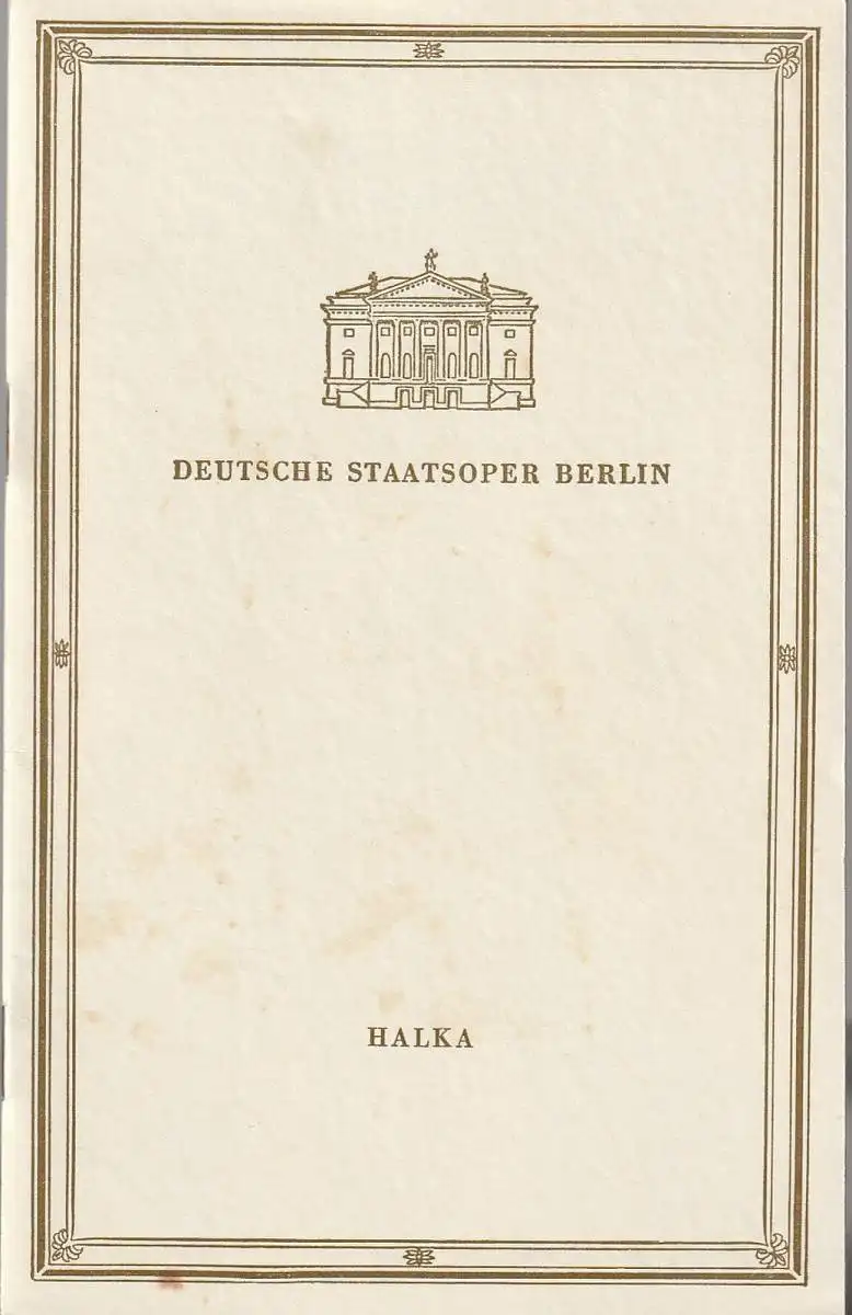 Oper in vier Akten von Wladimir Wolski. Musikalische Leitung: Zdzislaw Gorzynski. Dramaturgische Bearbeitung und Inszenierung: Leon Schiller. Choreographie: Eugeniusz Paplinski. Gesamtausstattung: Hainer Hill. Mitwirkende: Karl-Ludwig Gottschall, Ilona Papenthin, Kurt Rehm, Ingeborg Wenglor, Helmut Meinokat, Kay Willumsen, Hilbert Kahl, u. a. - Theaterprogramm, Opernprogramm, Ballettprogramm, Musicalprogramm, Konzertprogramm, Theatermemorabilia, Programmhefte Sammlung, deutsche Theatergeschichte.