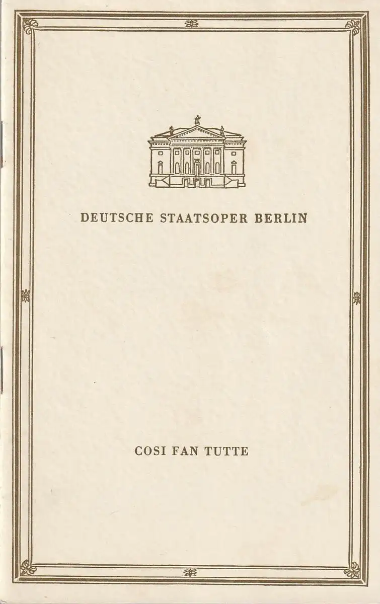 Deutsche Staatsoper Berlin, Günter Rimkus, Franz Hoffmeister ( Fotos ): Programmheft Wolfgang Amadeus Mozart COSI FAN TUTTE ( SO MACHENS ALLE ) 2. November 1956.