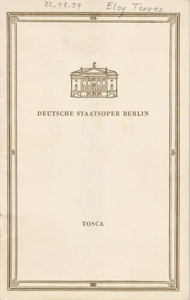 Deutsche Staatsoper Berlin, Günter Rimkus: Programmheft Giacomo Puccini TOSCA 22. Dezember 1959.