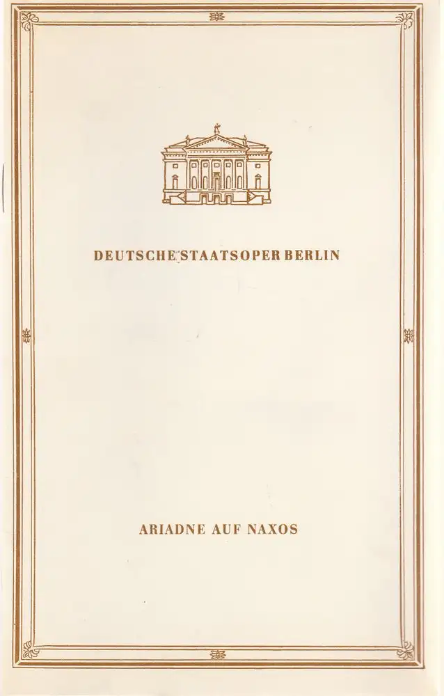 Deutsche Staatsoper Berlin, Günter Rimkus: Programmheft Richard Strauss ARIADNE AUF NAXOS Wiederaufnahme 11. September 1987.