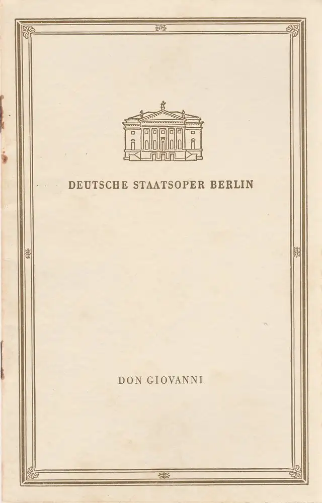 Deutsche Staatsoper Berlin, Günter Rimkus: Programmheft Wolfgang Amadeus Mozart DON GIOVANNI 8. Juli 1958.