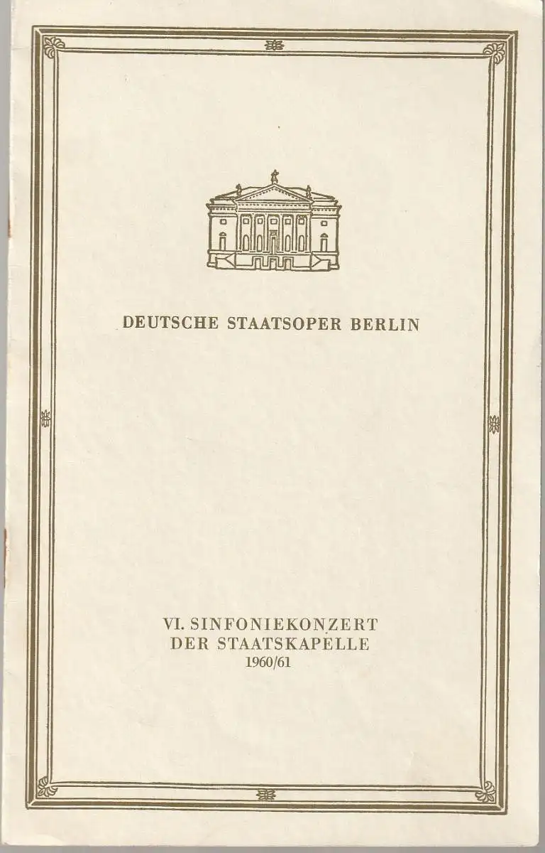 Deutsche Staatsoper Berlin, Horst Richter: Programmheft VI. SINFONIEKONZERT DER STAATSKAPELLE 14. April 1961 Spielzeit 1960 / 61.