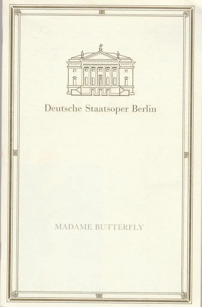 Japanische Tragödie. Musikalische Leitung: Fabio Luisi. Inszenierung: Eike Gramss. Ausstattung: Peter Sykora. Mitwirkende: Miriam Gauci, Dagmar Peckova, Borjana Mateewa, Dino Di Domenico, Siegfried Lorenz, Andreas Schmidt, Pär Lindskog, u. a. - Theaterprogramm, Opernprogramm, Ballettprogramm, Musicalprogramm, Konzertprogramm, Theatermemorabilia, Programmhefte Sammlung, deutsche Theatergeschichte.